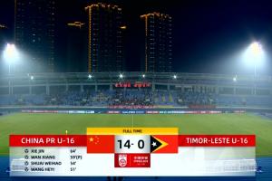 中国队14比0战胜东帝汶队,收获2026亚足联U17亚洲杯预选赛两连胜