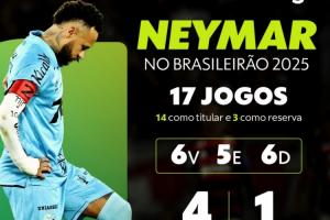 在预计2025年报销后,两年来内马尔缺席的天数超过600天。内马尔自回归桑托斯后,17场巴甲进4球,拿到5张黄牌,一次两黄变一红。